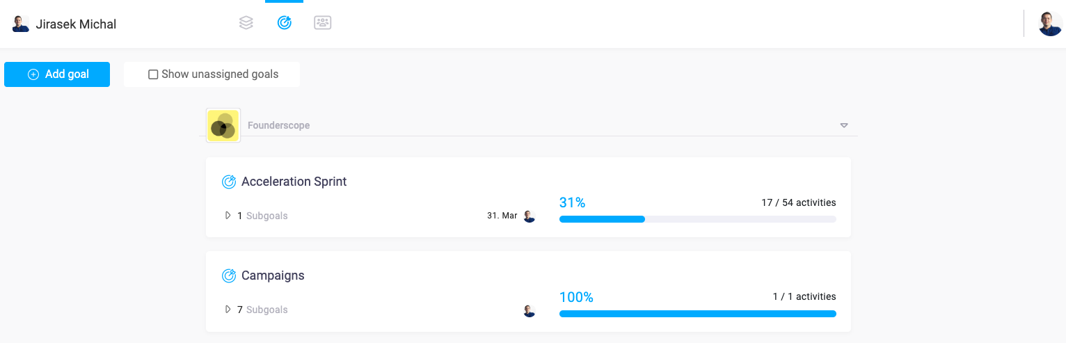 Similar as for activities you can now create dependencies between goals. Because goals can be tied to activities you can use them as bigger milestones of your work and automatically track the progress of each milestone. For dependent milestones you can use dependencies so you can easily see which milestone is blocking the work on other milestones. Timeline view for goals will follow soon.